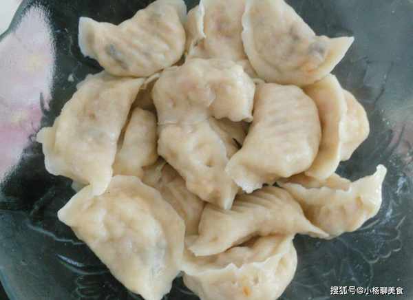 步驟八:鍋內添冷水燒開,下入餃子,大火煮開,拿走蓋子,繼續煮到餃子鼓肚,即可撈出裝盤食用。