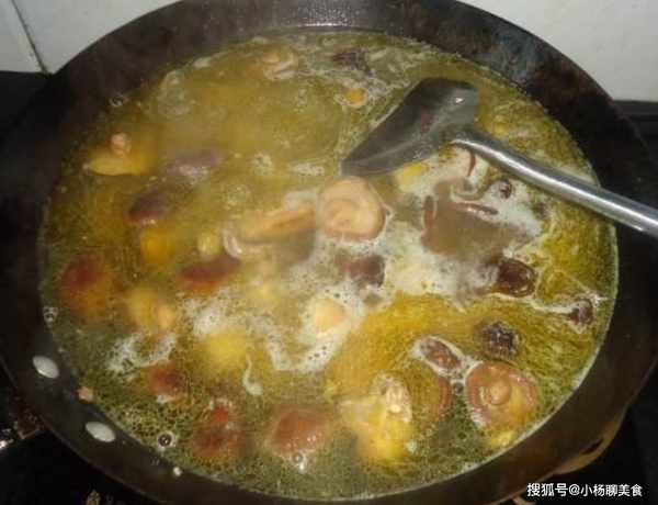 步驟五:大火燒開,換成中小火繼續慢燉20分鐘,然後倒入香菇,繼續慢燉1個小時左右。