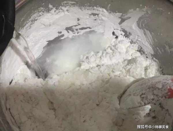 步驟一:另準備一個小盆,倒入木薯粉和開水,攪成絮狀,揉成麵團,然後放在一旁醒20分鐘。