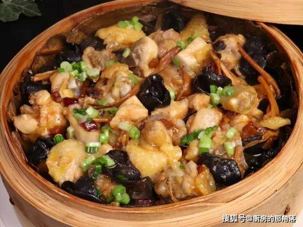3、想過提前有時泡發好,接著再下鍋焯水,焯好之後撈出,將其鋪在一個盤的底部,然後再把剛才醃好的雞塊碼上去,最後冷水端上鍋蒸熟就能出鍋享用啦!操作是不是很簡單,小白都能輕易學會呢。