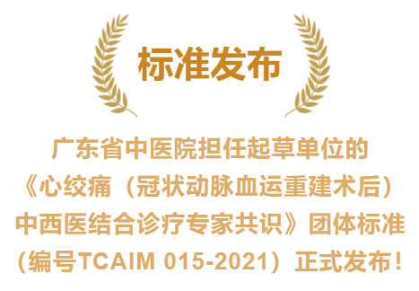 《心绞痛(冠状动脉血运重建术后)中西医结合诊疗专家共识》团体标准的发布,标志着在国家中医心血管病临床医学研究中心的领导下, 国家中医心血管病临床医学研究中心广东分中心的科研协作网络建设取得初步成效!