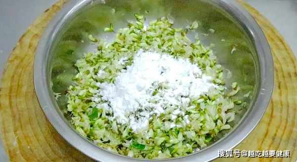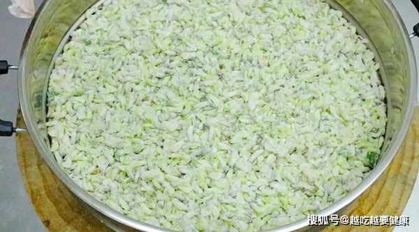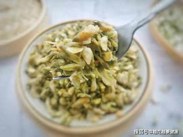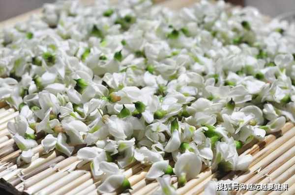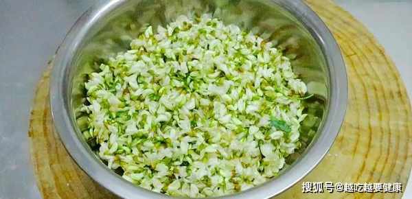 2.槐花要想做得好吃,一定要記得將裡面的水分擠幹哦。不著急吃槐花的朋友,也可以將其放在竹篦上給它晾凉五分鐘。這樣蒸出來的槐花就不容易粘成塊了。