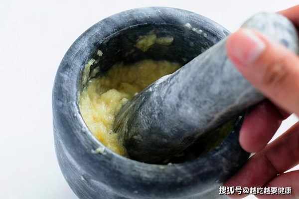 6.大蒜四瓣直接將其放在蒜臼子中,在裡面加入半勺食鹽快速地將其搗成蒜泥兒。然後將其撈出來。在這個蒜泥裡面加入兩勺陳醋、一勺生抽、半勺食用油、半勺精鹽,直接將其攪勻備用就可以啦。