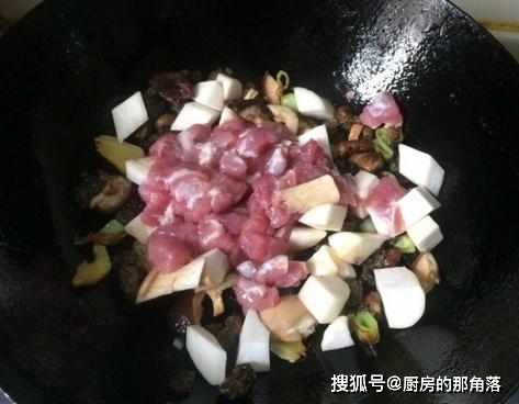 第五步,加上鹽和醬油調味,翻炒均勻後,將所有的食材倒在高壓鍋中,加上適量的水;