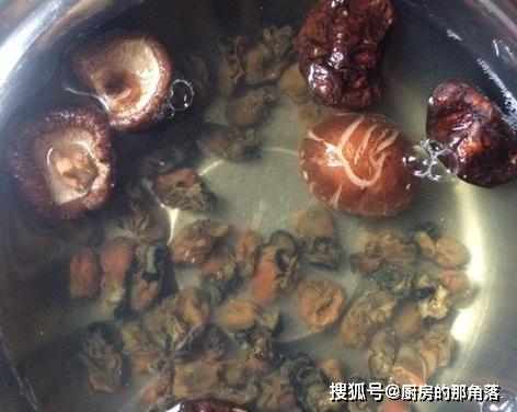 第一步,幹香菇和蚝幹準備好之後,提前放在水中泡發;