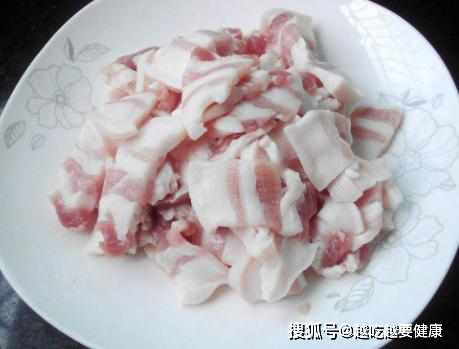 第三步,五花肉放在冰柜冷藏一會,取出來後,切成比較大點的薄片,同時薑蒜等準備出來;