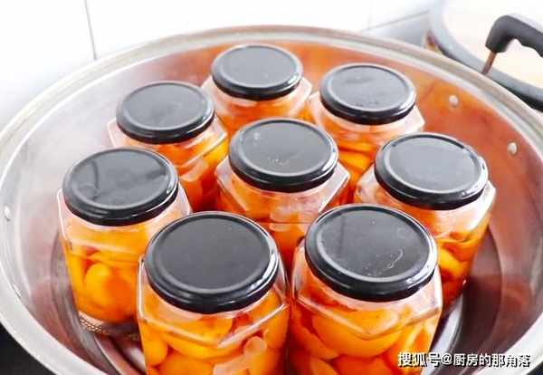 4.黃杏罐頭的玻璃瓶,開始煮制的時候我們稍微蓋上就可以了,不要擰得太緊。煮好之後我們趁熱立即將其擰緊,這能够有效延長黃杏罐頭的儲存時間。