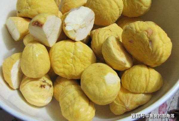 2、不要把煮好的板栗過冷水,這是錯誤的方法,過冷水後皮又會貼在表面。