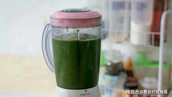 4、接著我們再來看第二個方法,把燙好的艾草分次放入料理機中,再加適量的清水,水量能帶動機器就行,然後攪打成細膩的泥狀,粗細程度其實沒有關係的,看個人喜好,小時候看媽媽做都是用刀剁碎的,吃起來也是一樣的好吃,打好後倒出來就行了;