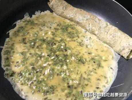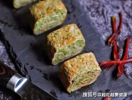 第五步,在空餘處再倒入蛋液繼續煎,八成熟的時候卷起來,重複這個過程最後將其卷好煎好後盛出便可切塊享用。