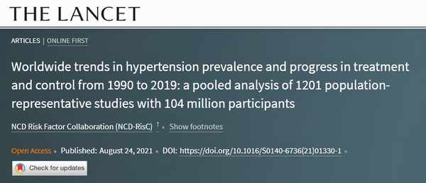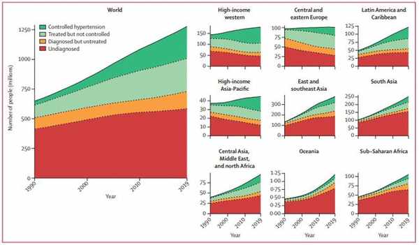 此研究分析了來自184個國家30年以來超過1億人的血壓量測,結果資料顯示:在接近30年以來,高血壓患者數量翻了一倍,突破12億患者,其中還有超過一半患者尚未得到治療。
