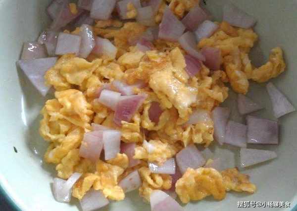 步驟五:最後倒入雞蛋碎,撒入適量食鹽,炒勻後即可盛出食用。