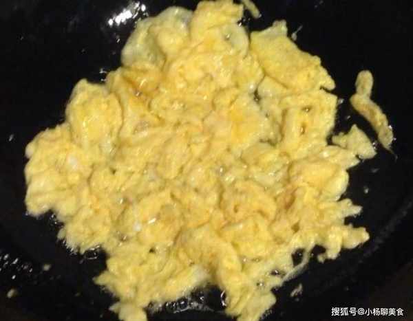 步驟三:起鍋熱油,油熟後倒入雞蛋液,等到雞蛋液成型搗散盛出備用。