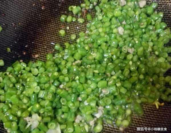 步驟一:豆角撕掉老絲,洗乾淨後撈出瀝幹水分,切成小丁。