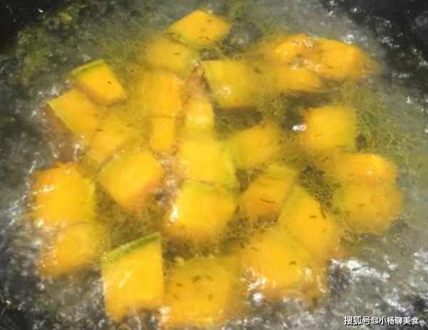 步驟一:南瓜去皮去瓤和種子,放入清水中洗乾淨,控幹水分切成塊。