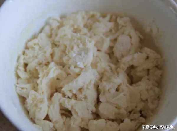 步驟三:準備一個碗,倒入適量麵粉和食鹽,混合均勻後,倒入適量清水,攪成絮狀,成小疙瘩的模樣。