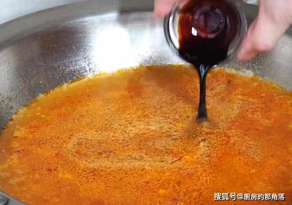 7.五分鐘後,然後再將猪肉丁放入其中煮至熟透,大火收汁至湯汁黏稠,即可出鍋裝盤。