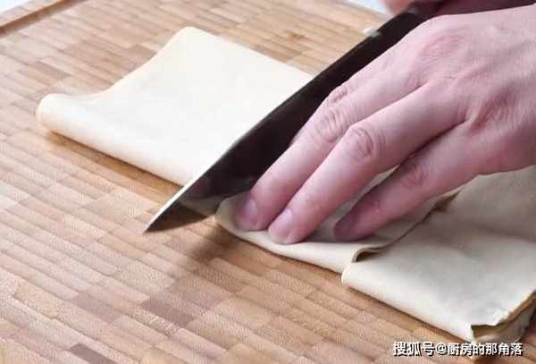 2.然後再將準備好的幹豆皮從中間切開,切成寬條狀,然後取一個幹豆皮將其金針菇卷起備用,再用牙籤固定住放入盤中。(這裡的幹豆皮也叫千張,大部分小量販店都有賣的,有原味的,還有鹹味的,我們可以直接選擇原味的。)