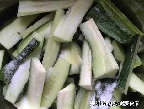 1、黃瓜的水分比較多,如果不事先逼出水分,醃制的黃瓜便不會脆爽,所以將黃瓜切好後,事先加上鹽醃制一會,因為所用黃瓜並不多,所以差不多醃制一個小時就可以逼出水分了;