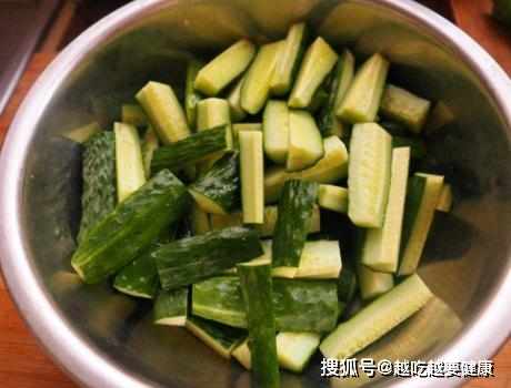 第一步,首先準備2根黃瓜,將其仔細清洗乾淨,然後控幹表面的水分,將黃瓜切成長短適中並且粗細均勻的段,處理好的黃瓜放入一個大碗中,加上一點點食鹽,用手將其抓拌均勻;