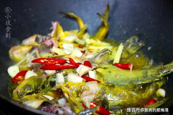 3、鍋裏放入菜籽油,燒熱以後,放入薑片還有少許的油,再把我們準備好的黃丫頭放進去開始煎,煎至出現香味。