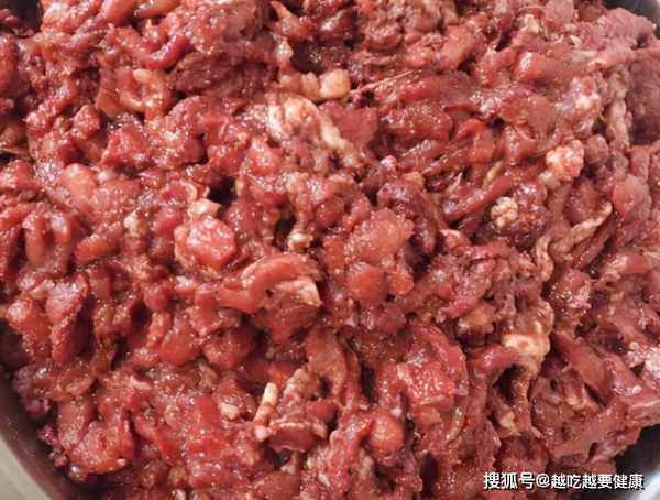 第一步,猪肉選擇七瘦三肥的,將猪肉切成小一點的丁,加上57度的白酒,戴上一次性手套,將其抓拌均勻;