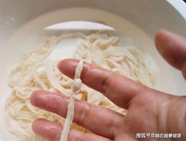 第三步,豬小腸準備出,用手將其表面的一層撕下來,不要白色的部分,取紅色的用,用刀背將紅色腸刮薄,刮出的紅色液體不要,繼續刮刀沒有東西,成為白色透明狀就可以了;