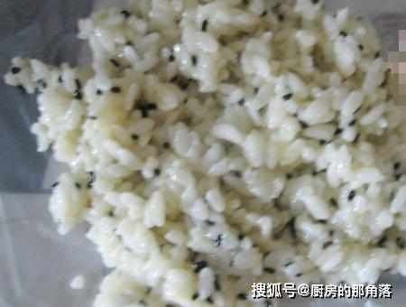 第三步,加上鹽、黑胡椒粉和黑芝麻,攪拌均勻,直至上勁;