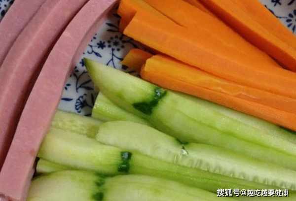 首先將胡蘿蔔清洗乾淨,切成細條,放入燒開的水中焯水一分鐘撈出。黃瓜去皮後切成細條,火腿切成細條,辣白菜切成段狀備用。雞蛋放入適量的鹽打散,攤成厚蛋皮,晾凉之後切成條。將米飯放入一個碗中,然後加入適量的鹽、香油和壽司醋攪拌均勻備用。