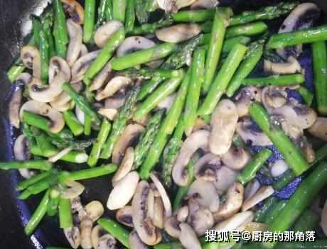 2、蘆筍和口蘑都不建議下鍋炒太長的時間,所以炒菜的時候記得要用大火快炒,短時間內炒好出鍋,這樣的菜肴口感更加鮮嫩,事先用花椒粒爆香,炒的菜可以提香;