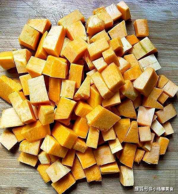 1.首先我們將市場上買來的南瓜處理一下,先用刮皮刀將其表皮去除,之後用清水將其沖洗乾淨,邊洗邊用手除去南瓜裡面的籽,全部除乾淨以後,將它放在案板上,用刀將其切成大小合適的塊狀,切好後將南瓜塊放在案板上備用即可。