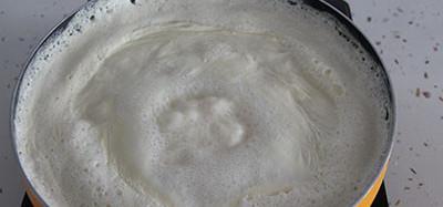 5.倒入鍋中煮熟後關中火繼續煮3-5分鐘,直至豆漿表面出現至一層豆衣即可食用了