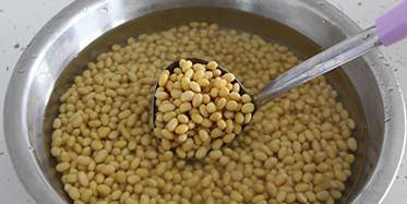 2.炮製好的黃豆用手輕輕的一捏即可成兩半