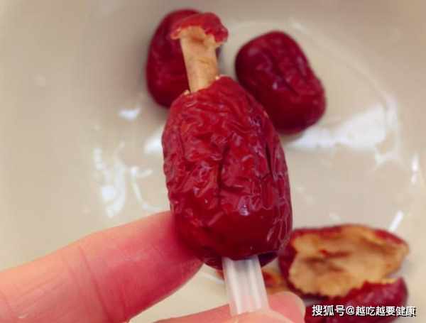 第三步,紅棗準備出幾個,將其搓洗乾淨,去掉核,待銀耳煮了20分鐘的時間,便可看到微微出膠了,這個時候放入紅棗一同煮,順時針攪拌30秒;
