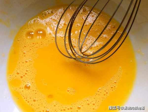 第三步,在雞蛋液中滴入幾滴食用油,將雞蛋打散成蛋液,下麵便可開始炒菜了,在炒鍋中添上適量的食用油,燒熱後,將雞蛋液淋入鍋中,別急著翻炒;