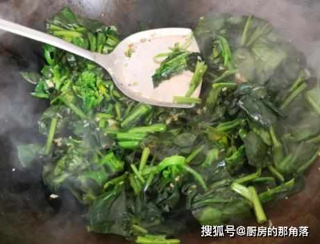 3、炒菠菜,需要用大火快炒,在短時間內炒好出鍋,菠菜的口感好,且營養也不會流失,這道菜無需添加過多的調味料,簡單的搭配更好吃,我只放了鹽調味,喜歡味精可以在出鍋前加上一點點提鮮。
