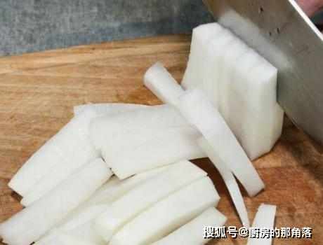第一步,首先需要將所有的食材都準備到位,白蘿蔔清洗乾淨後,取一節用即可,將其外皮用刮皮刀削去,然後切成條狀,胡蘿蔔洗淨後,去皮,切成花刀片;