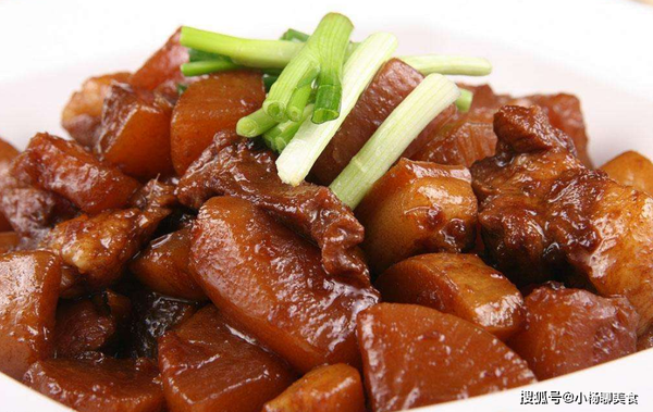 八分熟的五花肉一塊、白蘿蔔半條、紅蘿蔔一條、葱適量醬油、適量八角、12個冰糖、適量水適量