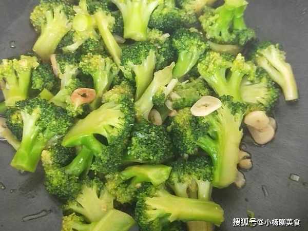 3.鍋中加入適量油,下入大蒜煸炒至香,再下入西蘭花