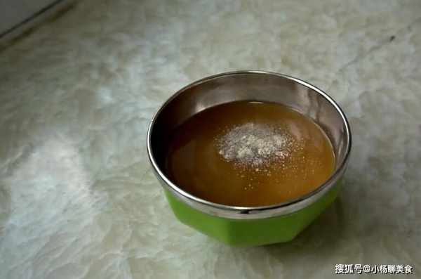 第三步:調一下料汁,碗中加入生抽、醬油、五香粉、半碗清水,攪拌一下加入一勺澱粉,攪拌均勻後備用。
