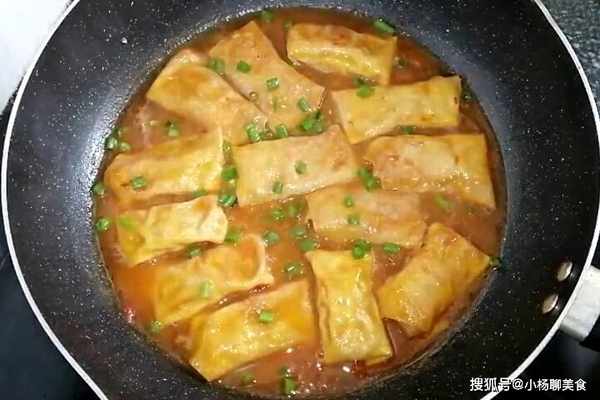 第五步:鍋中的油不要倒掉,在裡面加入葱末炒出香味之後加入一勺豆瓣醬,開小火炒出香味之後將煎好的蒜苔卷倒進來,輕輕地翻拌一下,就可以出鍋了,出鍋前撒上適量的蔥花或者香菜點綴一下,美味即成。