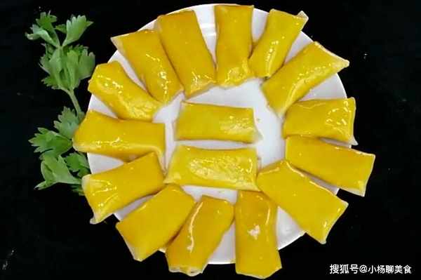 4.卷的時候要卷的緊實一些,防止破功,在卷好的蒜苔卷上面出上一層蛋液看起來會更有食欲。