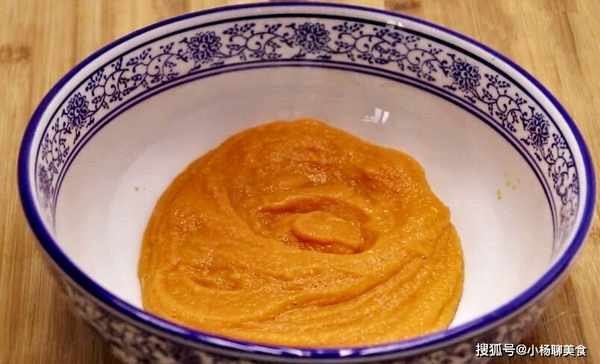 第二步:南瓜切片,放在鍋裏蒸十五分鐘,用勺子攪拌成南瓜泥,晾凉後備用。