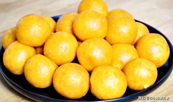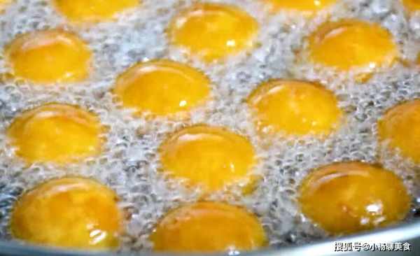 4、如果你想吃表皮很酥內心很軟的小球,在將南瓜球炸至定型時撈出來,等油溫升高以後再進行複炸一次,這樣炸的小球外皮更酥,內部更嫩。