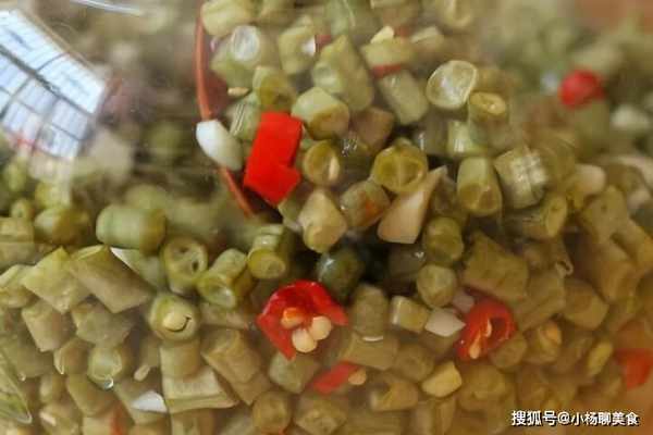 2.豆角一定要瀝幹水分再將它切成豆角丁,這樣在醃制過程中才不會變壞。