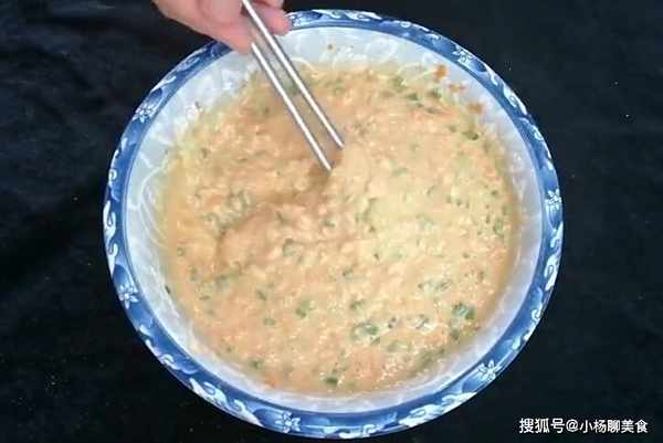 第三步:將蒸熟的紅薯取出來倒在一個大一點的盆中加入一勺白糖用勺子按壓成細膩的紅薯泥,然後分次少量的加入糯米粉,邊倒入邊攪拌,攪拌到黏黏的面糊狀,然後再將事先準備好配菜倒進來,然後再打入2個雞蛋,根據個人口味加入一勺食鹽,少量的胡椒粉,最後用筷子攪拌均勻,攪拌至粘稠的面糊狀就可以了。第四步:準備一個乾淨的裱花袋,將麵糊倒進裱花袋裏,在下麵用剪刀剪成一個小口子備用。