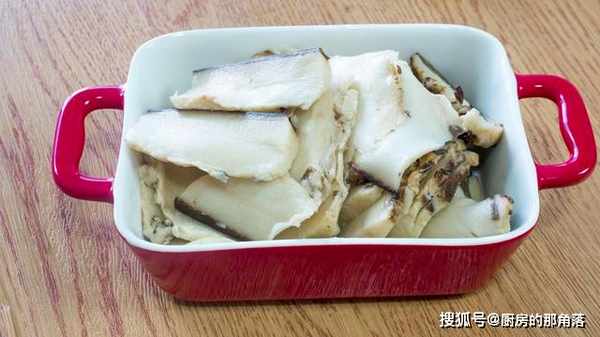 4、取出蒸熟的杏鮑菇放凉,然後用手撕