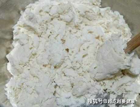 第二步,一邊倒水,一邊攪拌,將其成為絮狀的時候,用手揉成一個光滑的麵團,蓋上一張濕布子,放在溫暖的地方醒發,靜置醒發至原來的2倍大,這個過程中處理南瓜,南瓜最好是選擇比較軟糯口感的;