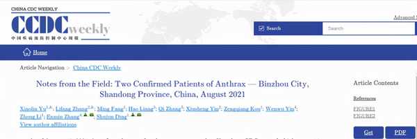 據最新一期《中國疾病預防控制中心周報》發佈了山東濱州發現2例炭疽確診病例的報告,其中一名14歲患者已經死亡。