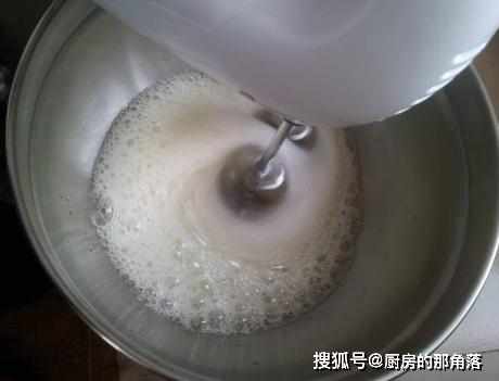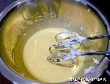 第二步,用打蛋器開始打發,直到將其打至泡沫狀,並且蛋黃發白的狀態,就說明打發成功了,打發好蛋黃後,便可以開始打發蛋清,用打蛋器將蛋白打發成泡沫的時候就可以了,無需過多打發;